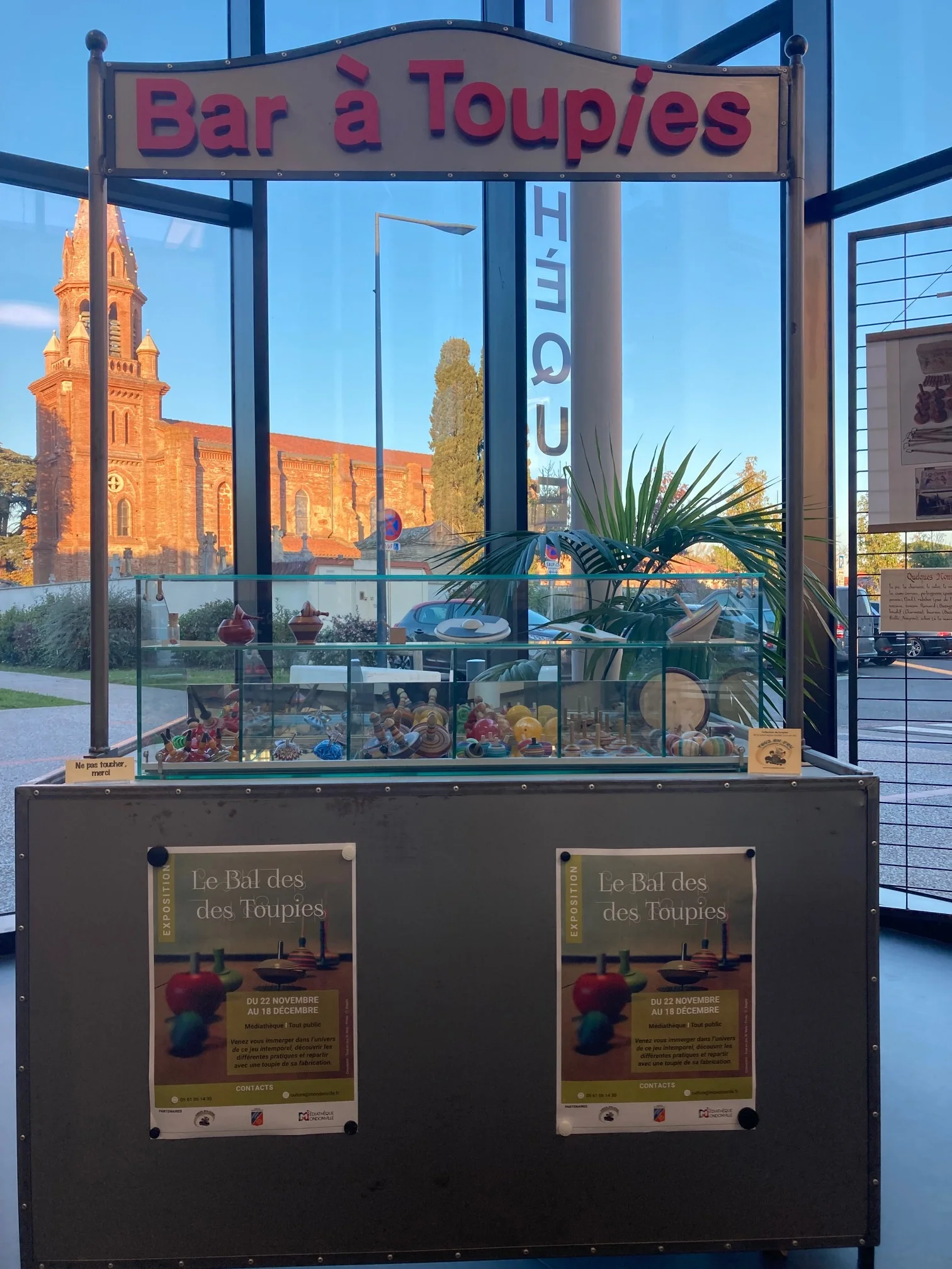 Le Bar à Toupies offre la possibilité de jouer et de manipuler différentes toupies : celles qui chantent, celles qui se retournent sur leur axe ; qui tournent sur le doigt ou qui se lancent à l’aide d’une ficelle.